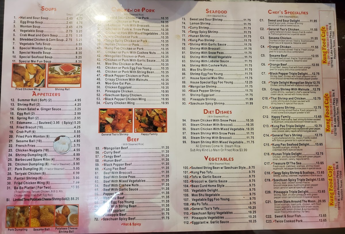 Welcome to Kung Food Cafe, a culinary gem located at 12710 W Lake Houston Pkwy, Houston, TX. This delightful eatery offers a vibrant menu that showcases a variety of delectable dishes, ranging from Sweet & Sour Chicken to Kung Pao Tofu, ensuring there's something for everyone.